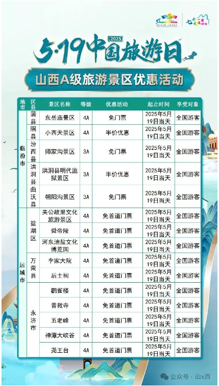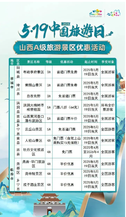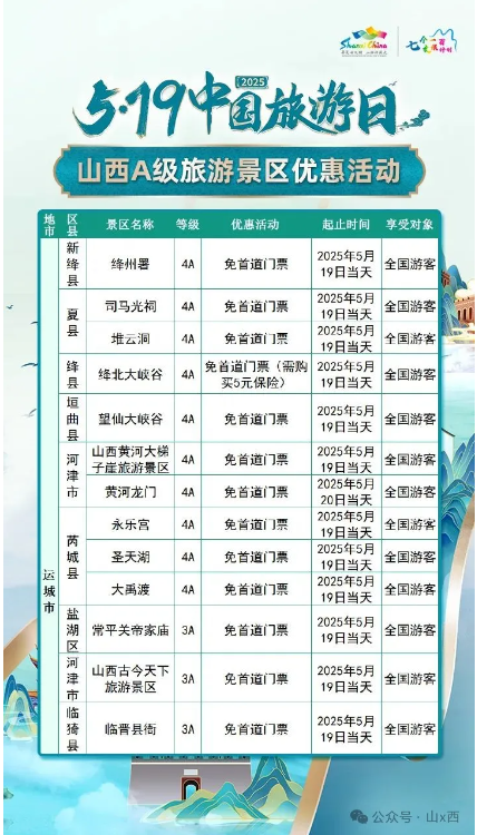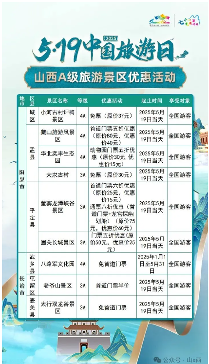 5·19中國旅游日 | 山西A級(jí)旅游景區(qū)面向全國游客優(yōu)惠
