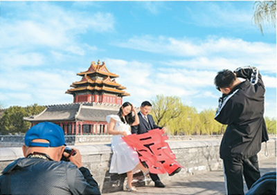 “今年訂單量明顯上升,其中不少咨詢檔期的客人是外地的。”在北京從事領(lǐng)證跟拍、婚禮紀(jì)實(shí)拍攝的獨(dú)立攝影師劉璐璐告訴記者,西城區(qū)等婚姻登記處由于毗鄰故宮、景山公園等文旅地標(biāo),相對(duì)更加“出片”,受到新人們的青睞,“有一對(duì)廣東來的情侶領(lǐng)完證后開玩笑說,他們是來北京旅游的,順便結(jié)了個(gè)婚?!眲㈣磋凑f。