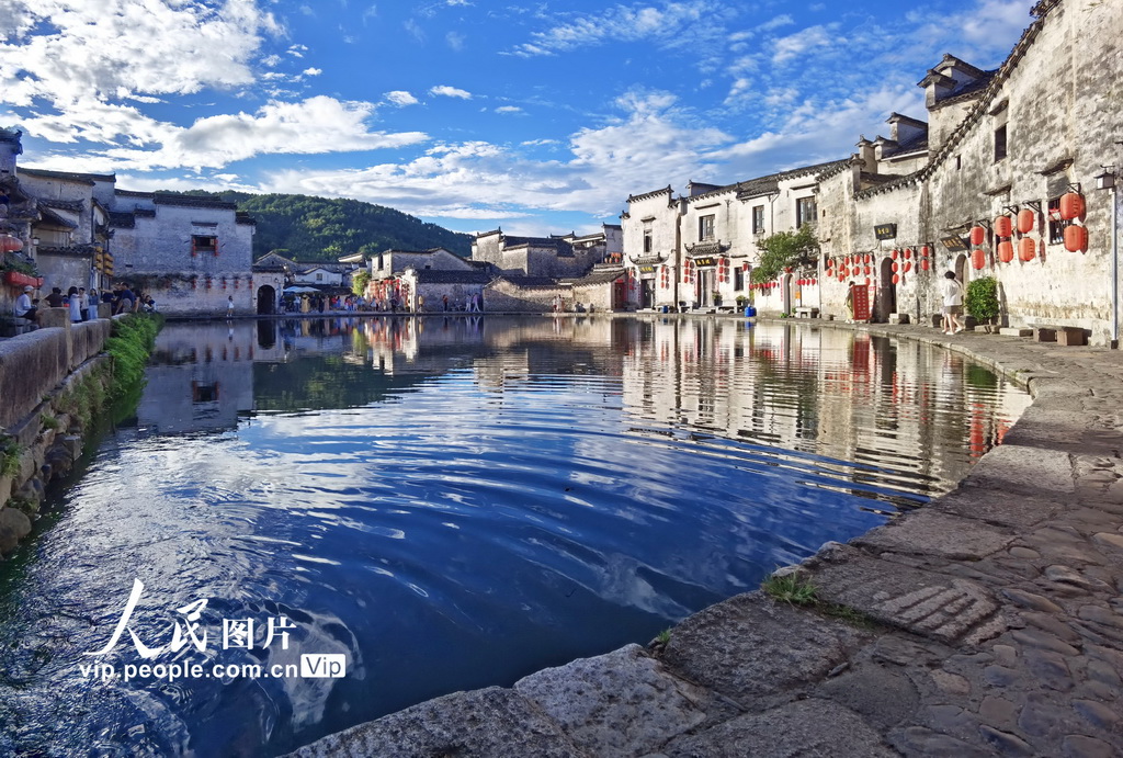 2025年7月20日,安徽黃山市黟縣宏村風(fēng)景旖旎,宛如一幅天然的水墨畫(huà)卷,讓人流連忘返。楊潔攝(人民圖片網(wǎng))