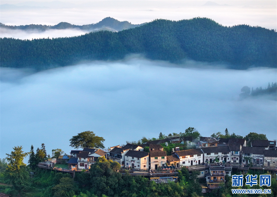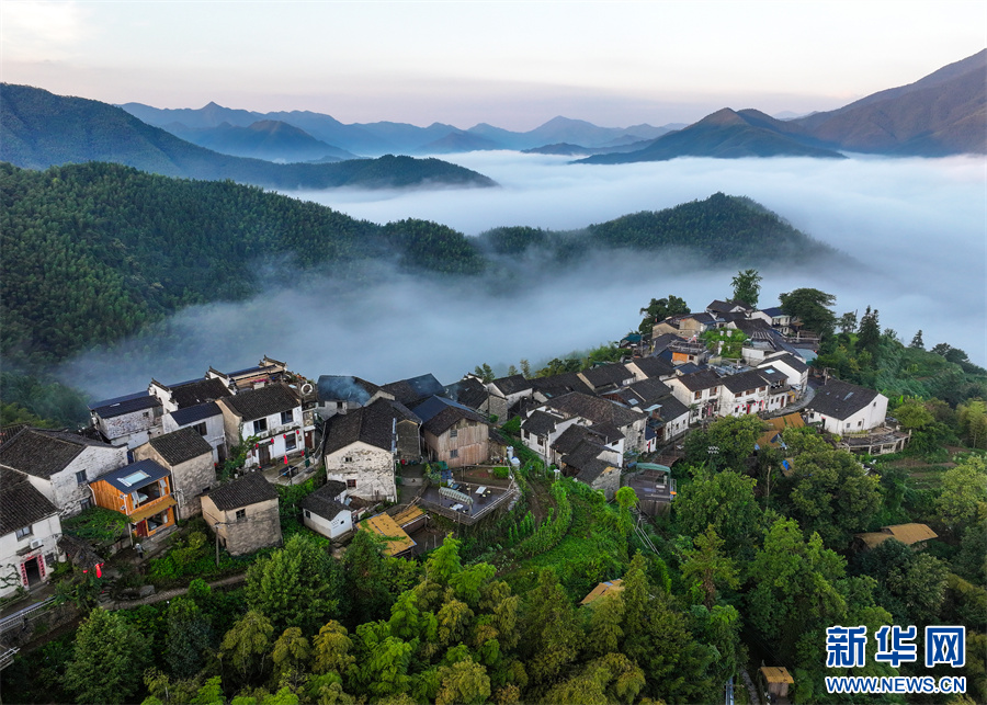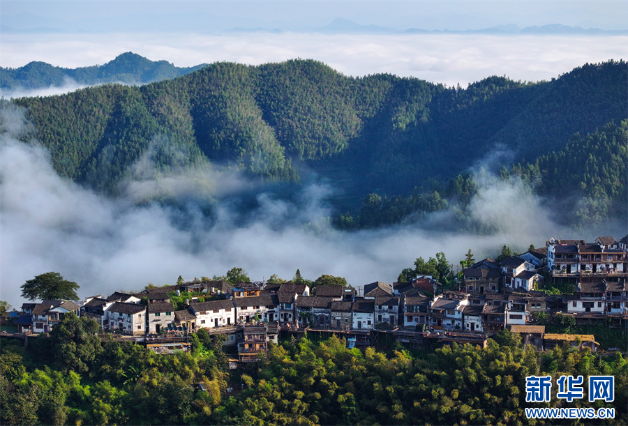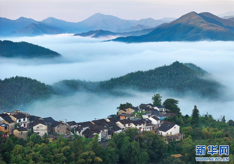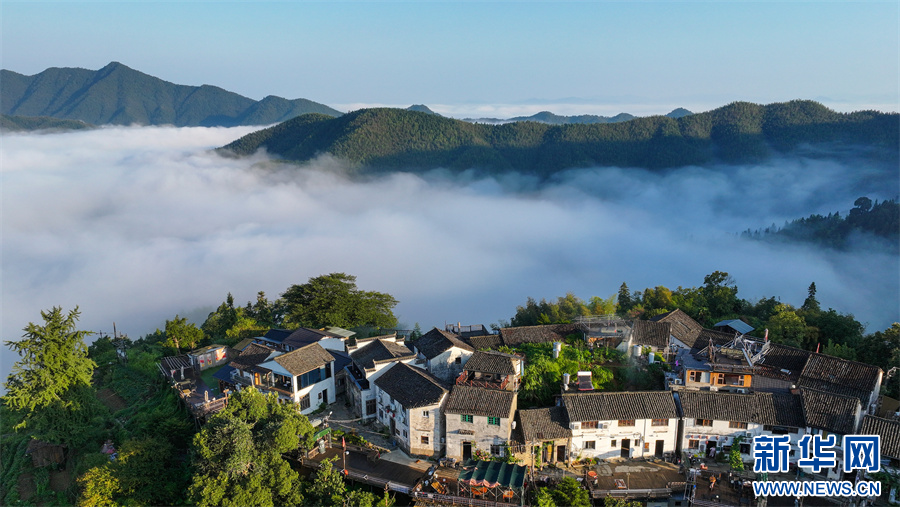 當(dāng)日,雨后初霽的安徽省黃山市休寧縣溪口鎮(zhèn)木梨硔村出現(xiàn)磅礴壯美的云海景觀。連綿的群山與漂浮的云海環(huán)抱著依山而建的徽派古村落,勾勒出一幅絕妙的秋日水墨畫(huà)卷。新華網(wǎng)發(fā)(施亞磊 攝)