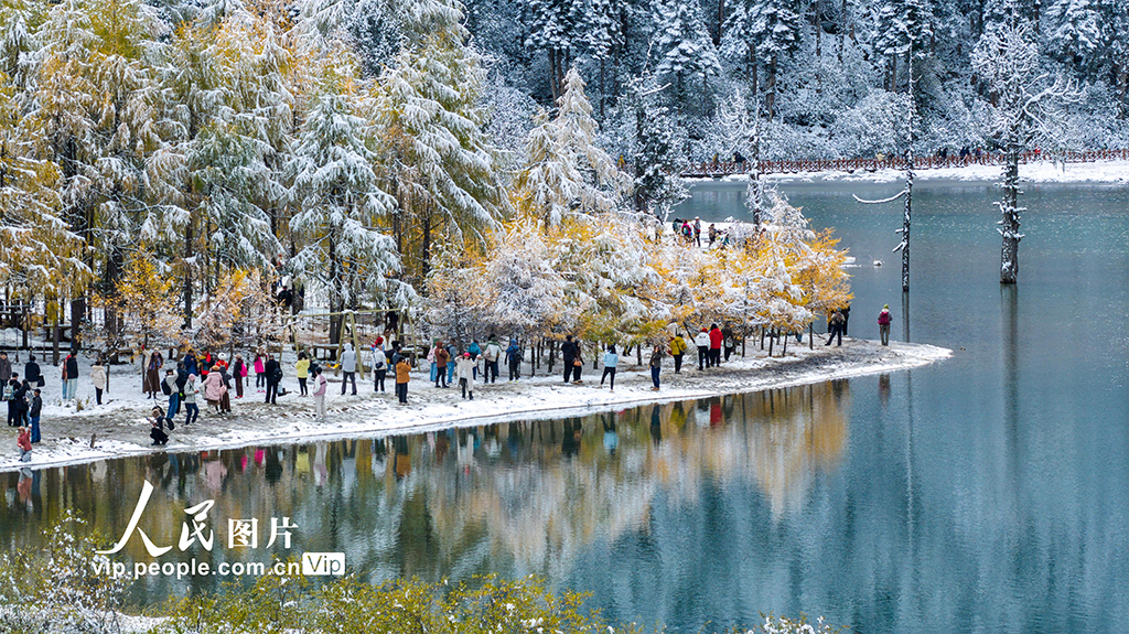 2025年10月26日,位于四川省阿壩藏族羌族自治州理縣的畢棚溝風(fēng)景區(qū)秋意正濃,景色如畫,吸引游客前來。方永濤攝(人民圖片網(wǎng))