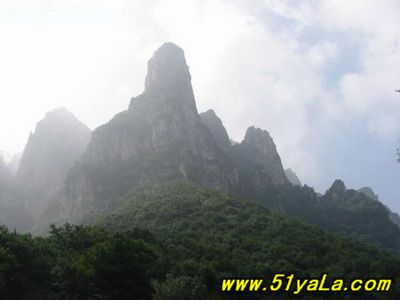 五老峰史稱東華山,歷史上為北方道教名山,海拔1809.3米,奇峰險峻,需攀鏈而上,屬丹霞地貌。這里是層層峰巒,森林古木,各種生物覆蓋著整個山野。花紅草綠,山光水色,風光旖旎非凡,故有“北有五臺觀庫存宇,南在五老看風光”之說。游人往縣城西南遠眺,見有東錦屏峰、西錦屏峰、太乙坪峰、棋盤山峰四山峰仙態(tài)神姿,隱現(xiàn)于云煙蒼茫之中,將高1809.3米的玉柱峰環(huán)抱其中,“有偃蹇傴樓之伏”,猶如五位老人抱拳作揖迎貴賓之勢,故名五老峰。