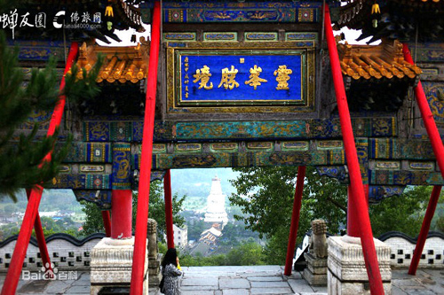 沿一百零八級石階登高,按照佛家的說法,就把人間的一百零八種煩惱踩在腳下了。置身牌樓下,手撫門柱,回身四望,遠(yuǎn)處的山,山上的云,近處的清水河,雄壯多姿的寺廟建筑群,都收入眼中,深感“靈峰勝境”四個字點得妙。這里,是很好的登高覽勝的觀景點。一九四八年春,黨中央機(jī)關(guān)從延安開赴河北省西柏坡,途中路過五臺山,陳毅同志作詩道:“本不游五臺,迂道時日緊,至今有余歡,曾踏菩薩頂?!?/p>