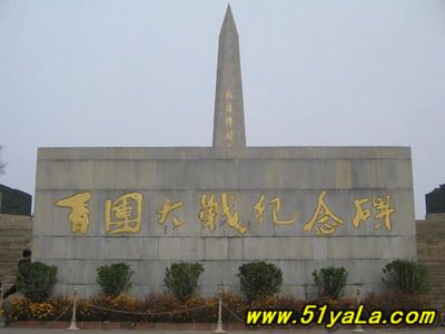 為紀念“百團大戰(zhàn)”的偉大勝利,緬懷為國捐軀的抗日英烈,1985年 4月中共陽泉市委、陽泉市人民政府報請中共山西省委批準,決定在獅腦山主峰興建“百團大戰(zhàn)紀念碑”。 “百團大戰(zhàn)紀念碑”座北朝南,由主碑、三座副碑、一座大型圓雕、兩座題字碑、四個烽火臺和長 227米蜿蜒起伏的長城組成,于1987年6月30日建成。 高40公尺的主碑 ,形如一把鋒利的刺刀 。主碑的三個面上,分別鐫刻著彭真、徐向前、薄一波的題詞。彭真的題詞是“戰(zhàn)績輝煌,永垂史冊”;徐向前的題詞是“參加百團大戰(zhàn)的烈士們永垂不朽”;薄—波的題詞是“百團大戰(zhàn),抗日戰(zhàn)爭中最光輝的一頁,必將載諸史冊,永放光芒。” 第一座題字碑正面是“ 百團大戰(zhàn)紀念碑” 七個大字,背面鐫刻著“百團大戰(zhàn)示意圖”。第二座題字碑的正面和背面分別鐫刻著《百團大戰(zhàn)紀念碑記》和《獅腦山戰(zhàn)斗紀略》。 整個紀念碑建筑群,結(jié)構嚴謹,美觀新穎,氣勢雄偉,威嚴壯觀,反映了聞名中外的“百團大戰(zhàn)”的宏偉氣魄。在紀念碑周圍是林木繁茂的獅腦山森林公園。公園內(nèi)建有供人們游覽和休息的獅子閣、鐘亭、蘑菇亭,還有修復了的禪巖、蒲臺兩座古寺,使具有光榮革命歷史的獅腦山峰更加壯麗、秀美! (責任編輯:李冬梅) |