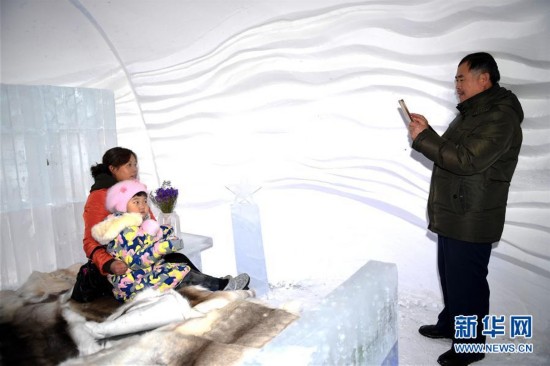 12月24日,在內(nèi)蒙古根河市敖魯古雅鄂溫克民族鄉(xiāng),游客在冰雪酒店里拍照留念。當(dāng)日,第五屆中國冷極節(jié)在內(nèi)蒙古自治區(qū)根河市開幕。根河市素稱“中國冷極”,當(dāng)?shù)乩帽┵Y源,并結(jié)合獨(dú)特的鄂溫克民族風(fēng)情,打造冬季旅游項(xiàng)目,為游客帶來不一樣的冰雪體驗(yàn)。新華社記者劉磊攝 |