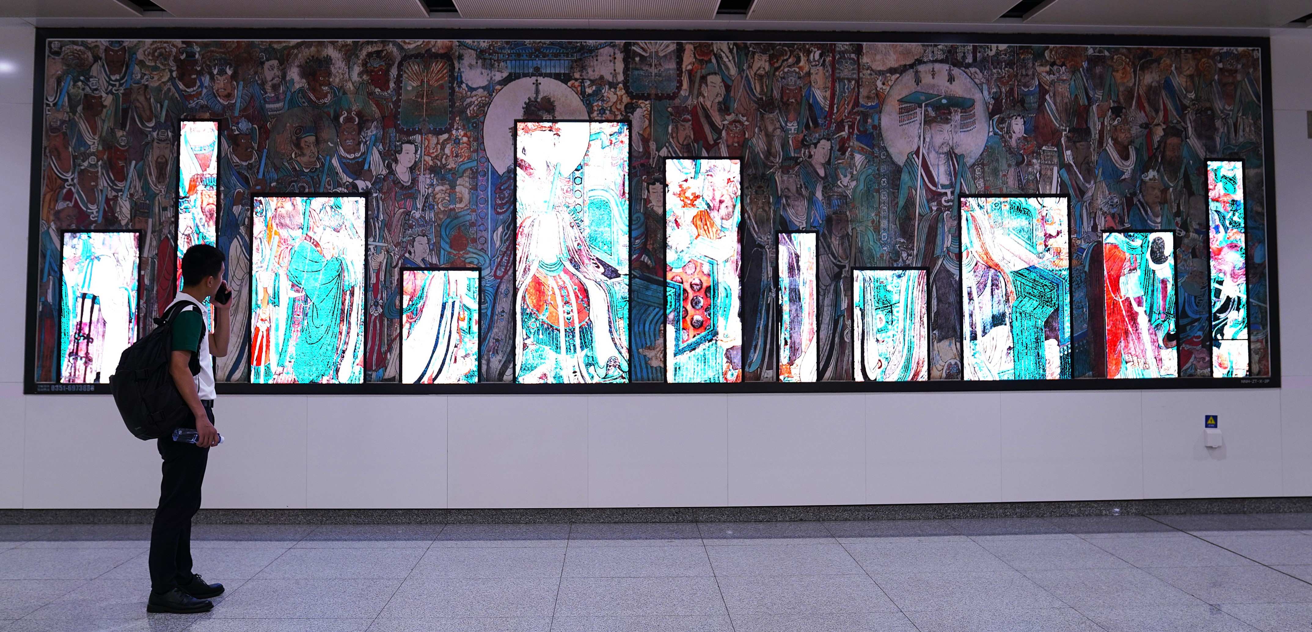 太原地鐵2號(hào)線南內(nèi)環(huán)地鐵站展示的永樂宮壁畫。井宇豪 攝
