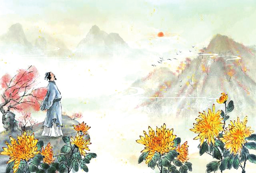 東晉詩人陶淵明在《九日閑居》一詩序文中曰:“余閑居,愛重九之名。秋菊盈園,而持醪靡由,空服九華,寄懷于言?!睂O思邈的《千金方月令》也稱:“重陽日,必以看酒登高遠(yuǎn)眺,為時(shí)宴之游賞,以暢秋志。酒必采茱萸、菊以泛之,即醉而歸?!碧拼蹙S的詩句膾炙人口:“遙知兄弟登高處,遍插茱萸少一人?!倍拍痢毒湃正R山登高》詩云:“塵世難逢開口笑,菊花須插滿頭歸。”清代,北京重陽節(jié)的習(xí)俗是把菊花枝葉貼在門窗上,“解除兇穢,以招吉祥”。