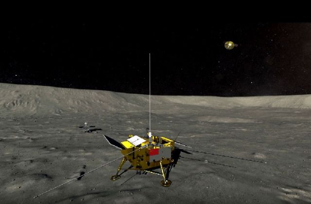 嫦娥四號(hào)、玉兔二號(hào)、鵲橋號(hào)全家福。(中國(guó)航天科技集團(tuán)五院供圖)