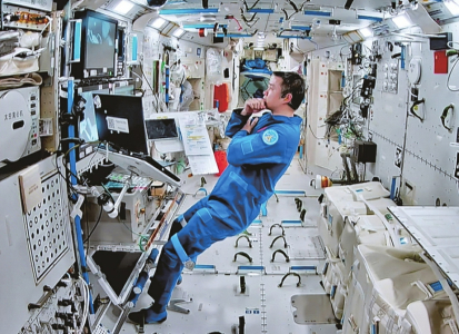 北京航天飛行控制中心屏幕拍攝的航天員艙內(nèi)工作畫面。