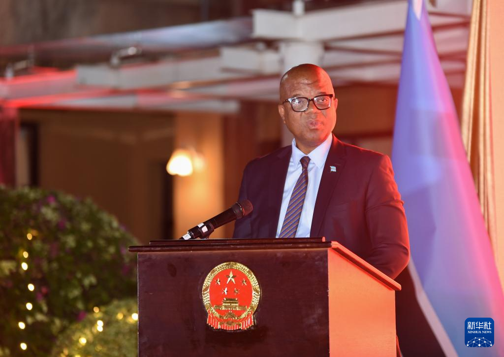 9月25日,在博茨瓦納首都哈博羅內(nèi),博茨瓦納總統(tǒng)事務(wù)部長莫瓦薩在慶祝中華人民共和國成立76周年招待會上講話。新華社發(fā)(策基索·特巴洛攝) 博茨瓦納總統(tǒng)事務(wù)部長莫瓦薩說,中國在經(jīng)濟(jì)增長和減貧領(lǐng)域取得了偉大成就,讓博茨瓦納深受鼓舞。博茨瓦納希望借鑒中國的發(fā)展經(jīng)驗(yàn),期盼深化與中方合作。中國是長期的朋友和可靠的發(fā)展伙伴,博方深深感謝中方為博經(jīng)濟(jì)社會發(fā)展作出的貢獻(xiàn)。 塞內(nèi)加爾武裝力量部長迪奧普說,塞中始終秉持團(tuán)結(jié)合作、相互尊重精神,不斷拓展深化政治、經(jīng)貿(mào)、社會、文化、體育等各領(lǐng)域合作,已落地一批重大基礎(chǔ)設(shè)施合作項(xiàng)目,有力助推塞經(jīng)濟(jì)社會持續(xù)發(fā)展。 盧旺達(dá)外交國務(wù)部長卡巴雷貝說,盧中在基礎(chǔ)設(shè)施、衛(wèi)生、教育和農(nóng)業(yè)等領(lǐng)域的合作為盧旺達(dá)國家發(fā)展注入重要?jiǎng)恿?。盧方高度重視通過中非合作論壇和“一帶一路”倡議等平臺開展的對華合作,愿共同推動雙邊關(guān)系邁上更高水平。