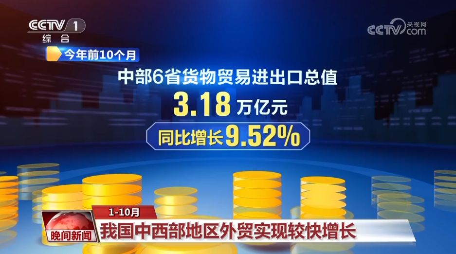 今年前10個月,中部6省貨物貿(mào)易進出口總值3.18萬億元,同比增長9.52%?!靶氯龢印碑a(chǎn)品出口增長47.35%。其中,電動汽車增長125.39%,高新技術(shù)產(chǎn)品占中部地區(qū)出口總值近三成。
