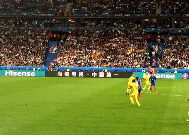 “海信電視,中國(guó)第一”!2016年6月10日,法國(guó)巴黎圣丹尼斯球場(chǎng),隨著歐洲杯揭幕戰(zhàn)打響,中國(guó)品牌海信的廣告出現(xiàn)在全球球迷面前。這是歐洲杯56年來第一次迎來中國(guó)贊助商,海信的廣告也在未來1個(gè)月內(nèi)出現(xiàn)在全部51場(chǎng)歐洲杯比賽中。