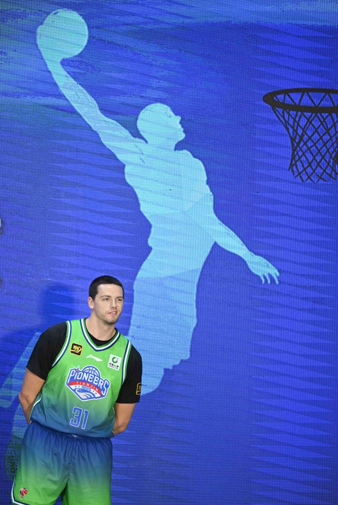 10月9日,天津隊(duì)球員大衛(wèi)·詹姆斯在出征儀式上。新華社記者 孫凡越 攝