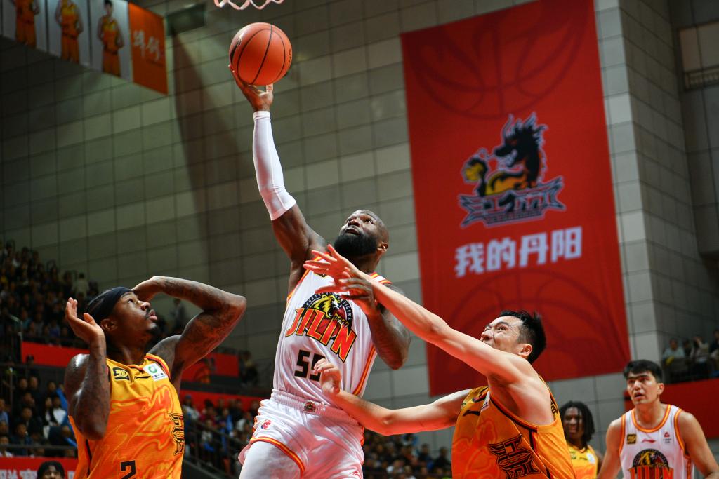 10月20日,吉林隊(duì)球員瓊斯(上)在比賽中投籃。新華社發(fā)(史康攝)