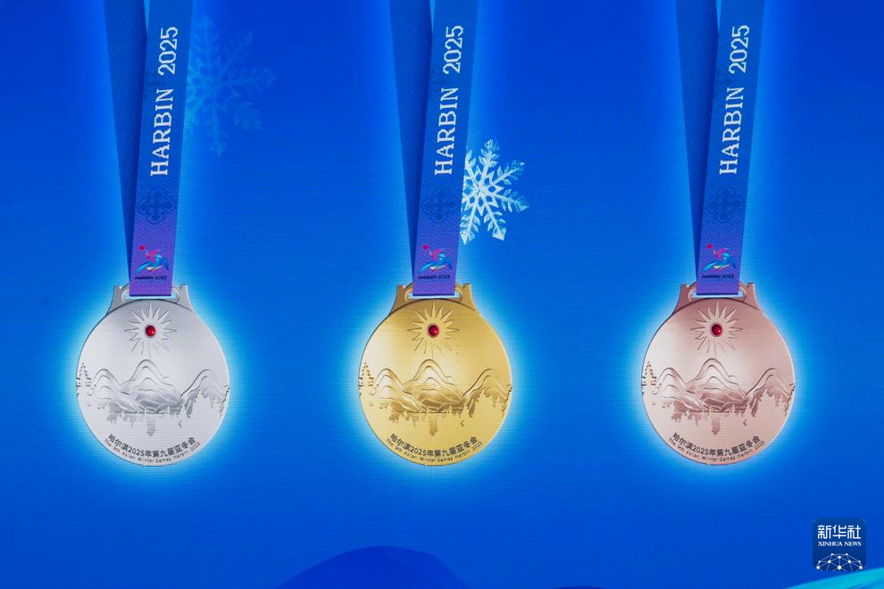 亞冬會獎牌“競速精神”同日發(fā)布。獎牌正面融合賽道流線和亞冬會會徽,以動態(tài)沖擊力凝煉出運動健兒馳騁賽場的矯健身姿,展現(xiàn)出競技體育的力與美;賽道的曲線造型融入哈爾濱大劇院的形象,具有獨特的城市美學(xué)特征。