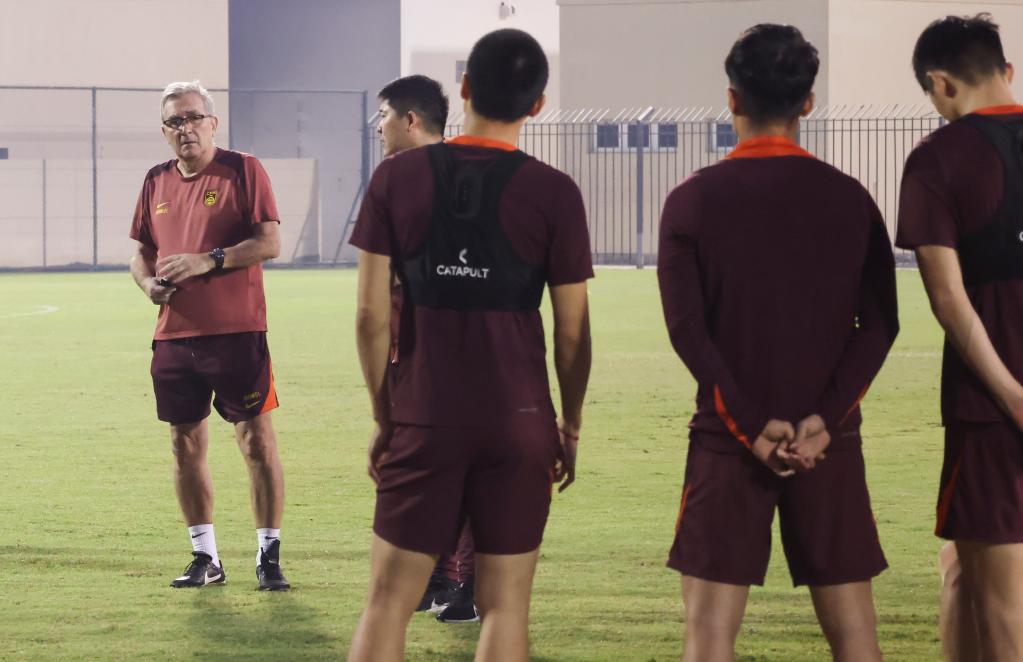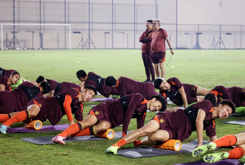 11月12日,中國國家男子足球隊(duì)成員在巴林進(jìn)行賽前訓(xùn)練,備戰(zhàn)14日與巴林隊(duì)的2026年世界杯亞洲區(qū)預(yù)選賽18強(qiáng)賽C組第五輪比賽。新華社記者 王海洲 攝