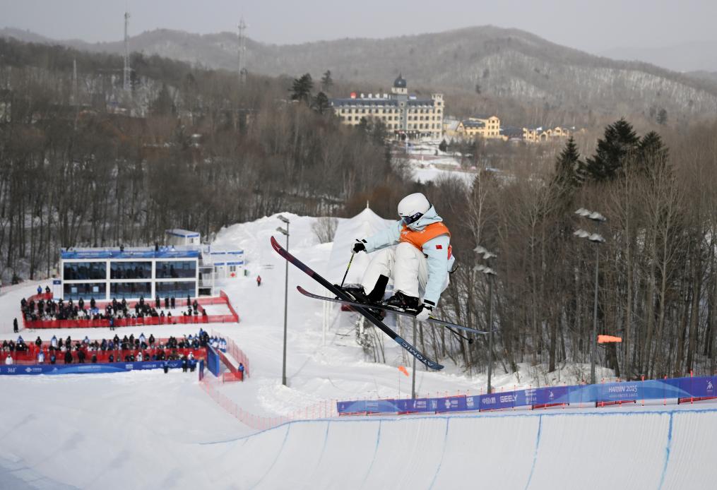 2月8日,李方慧在第九屆亞冬會(huì)自由式滑雪女子U型場(chǎng)地技巧決賽中獲得金牌。新華社記者 夏一方 攝