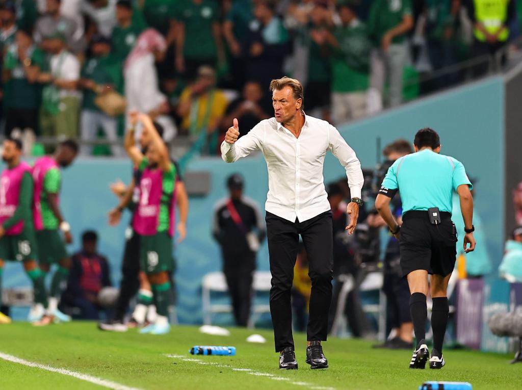 沙特隊主教練勒納爾在場邊指揮。 新華社記者 丁旭 攝