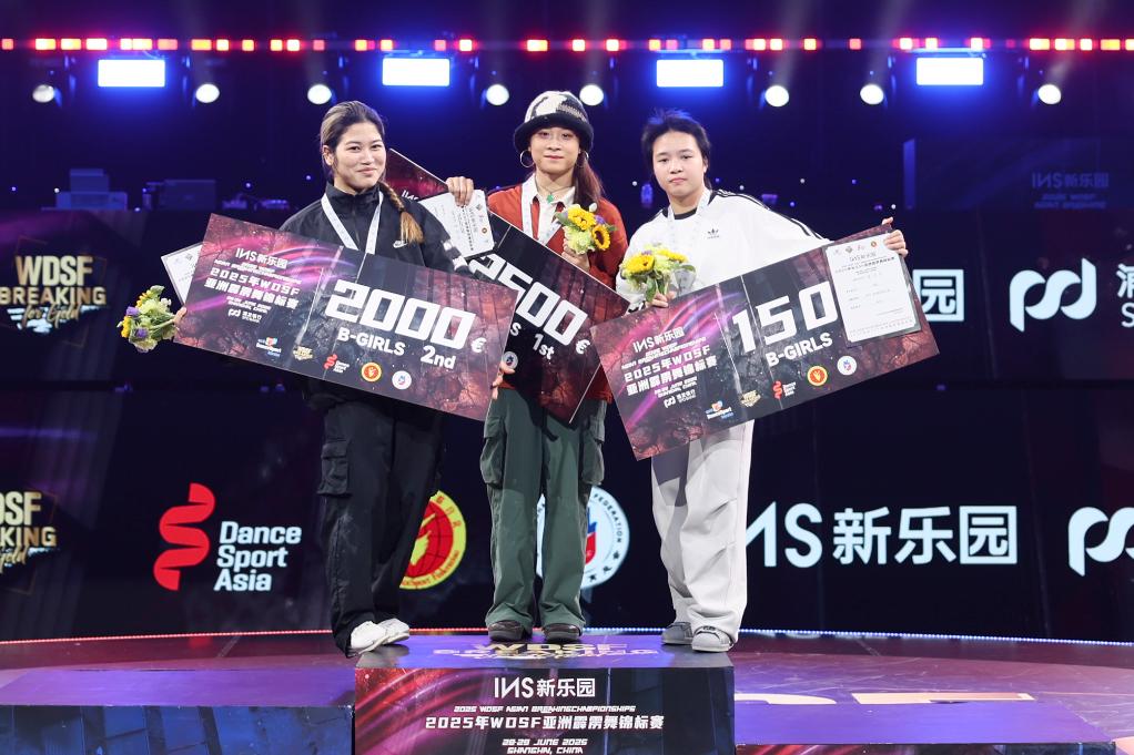 新華社上海6月29日電(記者許東遠(yuǎn)、肖亞卓)2025年亞洲霹靂舞錦標(biāo)賽29日在上海盧灣體育館結(jié)束。中國選手郭樸在女子組表現(xiàn)出色,繼前一日奪得亞洲青年錦標(biāo)賽冠軍后,再度在成年組比賽中折桂,實(shí)現(xiàn)連冠。男子組方面,日本名將、杭州亞運(yùn)會(huì)冠軍半井重幸則憑借穩(wěn)定發(fā)揮摘得金牌。