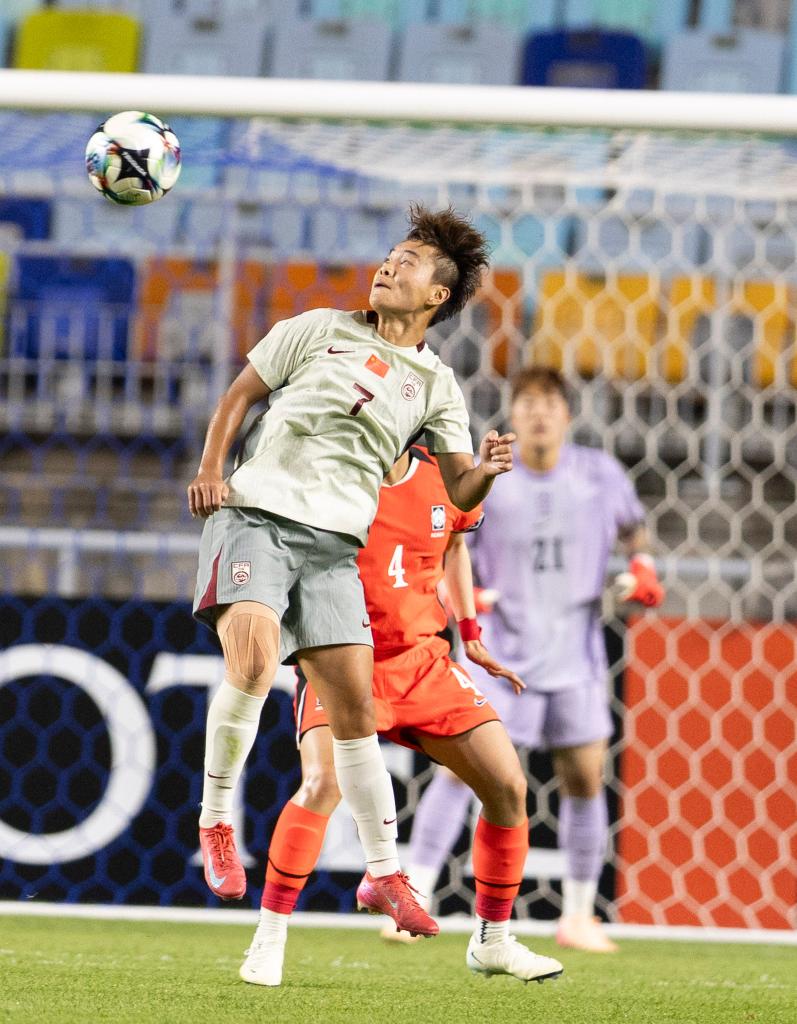 開局第15分鐘,中國隊姚偉一記遠射幫助球隊1:0獲得領(lǐng)先。但隨后韓國隊逐漸形成高位壓迫,多次在攻防轉(zhuǎn)換間沖擊中國隊后防線。上半場補時階段,韓國隊張瑟琪扳平比分。下半場第67分鐘,姚偉頭球助攻,邵子欽頭球接力破門,中國隊2:1重奪領(lǐng)先優(yōu)勢。整場比賽補時階段最后一分鐘,池笑然一記世界波幫助韓國隊追平比分。