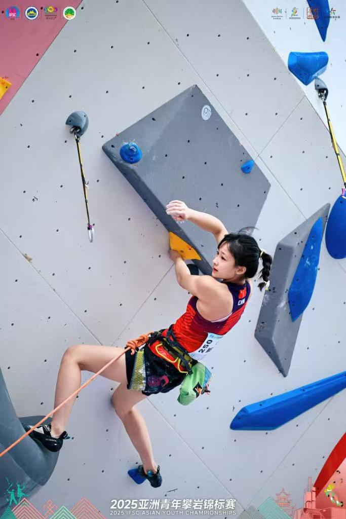 陳宣臻本屆比賽已收獲了U19組女子攀石銀牌。當(dāng)天的難度決賽中她倒數(shù)第二個(gè)出場(chǎng),最終爬出了32+的成績(jī),僅領(lǐng)先日本選手山真奈實(shí)一個(gè)出手奪冠。