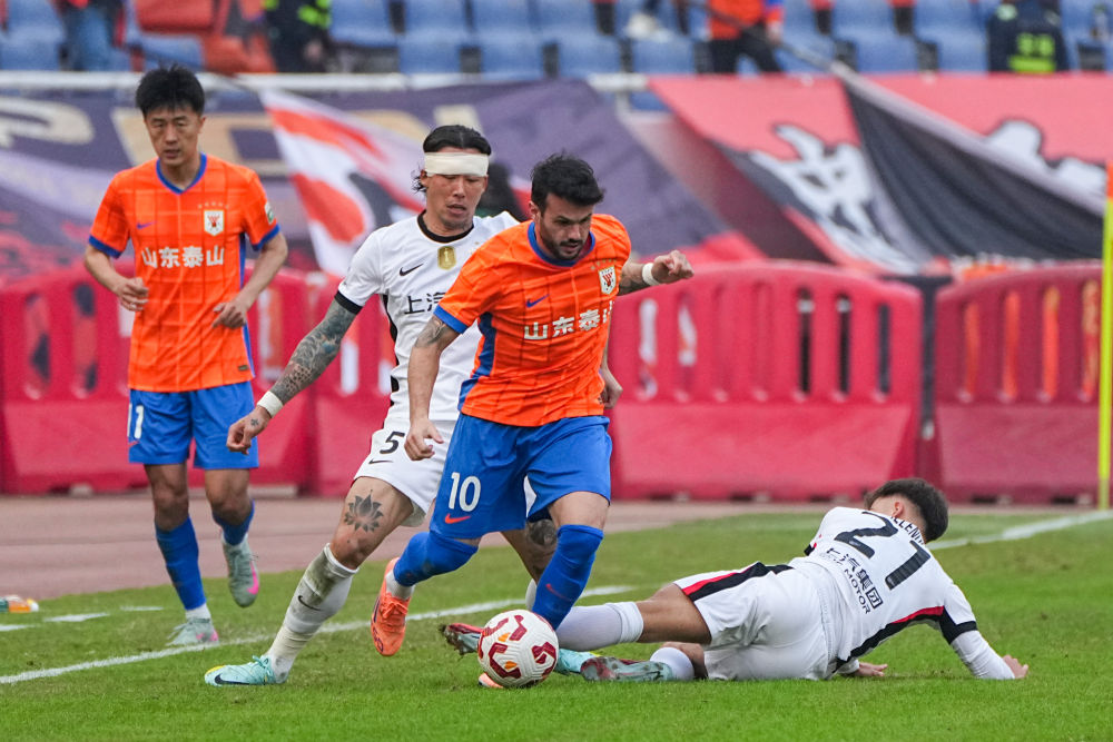 本輪比賽開始前,排名榜首的上海海港僅領先第二名成都蓉城2分。上海海港本輪客場對陣山東泰山,開場不久由李新翔打進一球,取得領先。但隨后山東泰山迅速調整,并逐漸掌握主動。第41分鐘,山東泰山外援澤卡反擊中突破送出斜傳,卡扎伊什維利跟進殺入禁區(qū)低射,將比分扳為1:1。