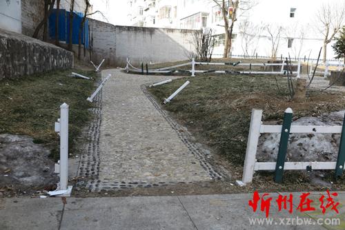 圖為慘遭破壞的花欄墻