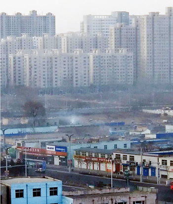 圖2為開發(fā)區(qū)小檀村有人家在燒煤。一網(wǎng)友攝