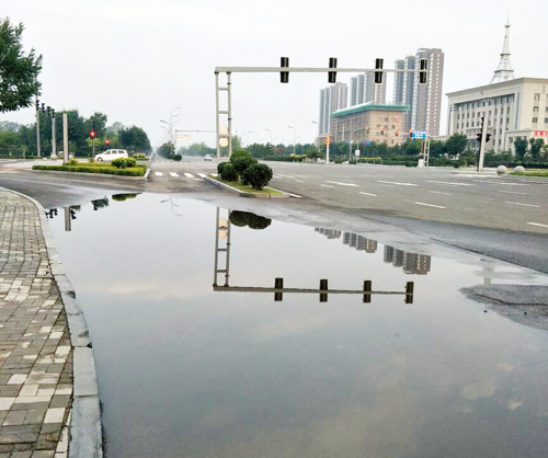 城區(qū)雁門大道與慕山路十字路口東南角,每到下大雨就有較深的積水。望相關(guān)部門及時進行處理。9月1日一網(wǎng)友攝