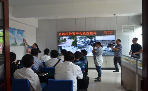 專家們聽取講解員介紹環(huán)衛(wèi)隨手拍綜合監(jiān)控處置平臺運行情況。