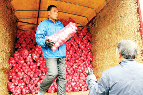 10月23日,原平市果農正在德金城農產品交易市場卸貨,進行銷售。原平市著力打通農產品銷售渠道,通過創(chuàng)建市場、加強管理,將當?shù)剞r產品規(guī)范到統(tǒng)一銷售場所,抱團銷售農產品,不僅方便了消費者,而且便于走出去,打造知名品牌。(吉建平 攝)