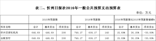 忻州日報社2016年度部門預算及“三公”經(jīng)費預算公開情況
