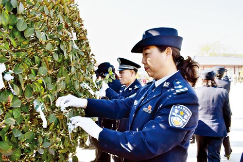 在烈士紀(jì)念碑前,大家重溫了入黨誓詞,許下莊嚴(yán)神圣的諾言,向革命烈士紀(jì)念碑敬獻(xiàn)花圈,集體脫帽低頭默哀,緬懷革命先烈勇于拼搏、甘于奉獻(xiàn)的崇高品質(zhì)。民警們參觀了烈士紀(jì)念碑,了解烈士事跡,并紛紛將胸前的小白花掛到了紀(jì)念碑旁邊的樹(shù)上,表示要牢記人民警察的神圣誓言和莊嚴(yán)使命,踐行“忠誠(chéng)、為民、公正、奉獻(xiàn)”的人民警察核心價(jià)值觀,傳承革命烈士的精神和情懷,履行好維護(hù)社會(huì)和諧穩(wěn)定的職責(zé),以飽滿的熱情和昂揚(yáng)的斗志為公安事業(yè)貢獻(xiàn)自己的全部力量。(魯明強(qiáng) 劉慧云)