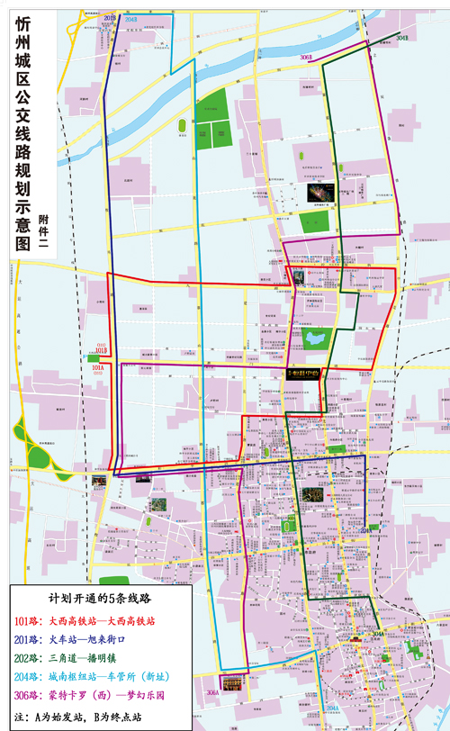 途經(jīng)站點(diǎn):蒙特卡羅(西)→忻府區(qū)公安局→健康小區(qū)→忻紡宿舍→長征街路口→十七局→悅?cè)A酒店→康樂小區(qū)→建設(shè)路口→忻州市供水公司→客運(yùn)中心→解原村口→大西高鐵站→雁門大道通崗路口→公安直屬分局→天瑞家園→帝豪花園→市交通局→市公安局→公路管理處→開發(fā)區(qū)→小檀村北口→紫檀街新建北路口→紫檀街云中路口→學(xué)院街口→陽村→水廠→播明鎮(zhèn)→夢幻樂園,共29個站點(diǎn)。