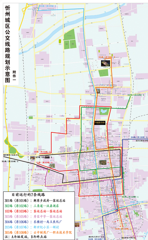 途經(jīng)站點(diǎn):解原鄉(xiāng)政府→佐城村口→流江村口→新路村口→供熱公司→燕山加油站→田家炳中學(xué)→逯家莊村口→武警支隊(duì)→寧靜大廈→廣電大樓→忻州六中→日月廣場→忻州市人民政府→君華新天地購物廣場→洗滌化妝品→火車站→云中路小學(xué)→和平廣場→市人民銀行→忻州師院→建設(shè)路口→忻州市供水公司→客運(yùn)總站(北),共24個站點(diǎn)。