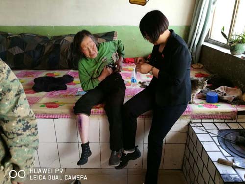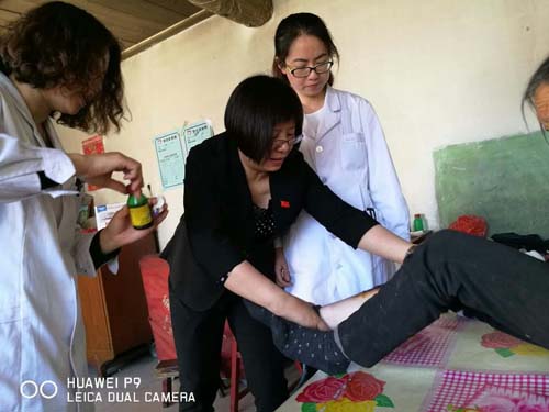 5月16日,忻州市衛(wèi)計(jì)委副主任楊春枝帶著黨支部部分黨員和忻州市中醫(yī)院的醫(yī)護(hù)人員再次趕赴到扶貧點(diǎn)寧武縣涔山鄉(xiāng)漚泥灣村,一進(jìn)村她(他)們連口水也沒有來得及喝,就安排中醫(yī)院醫(yī)護(hù)人員給村民們進(jìn)行體檢,楊主任和支部黨員就組織村委在村的6名黨員干部召開維護(hù)核心見諸行動(dòng)專題黨課,她(他)們共同重溫黨章,面對(duì)黨旗舉手宣誓,楊主任親自上臺(tái)主講了一堂生動(dòng)的黨課。隨后,她(他)們再次看望了貧困戶,在幫扶聯(lián)系貧困戶張存花家中,楊春枝主任從包里掏出自費(fèi)購買的膏藥,并親手扶起衣服給老人貼在患處?!澳銈兇罄线h(yuǎn)的每次都來看望我,上次我說腰疼,這次就給我?guī)砹烁嗨?,還親手給我貼上,不知道該怎樣感謝呀,這閨女就是比親閨女都親……”寧武縣涔山鄉(xiāng)漚泥灣村80歲的殘疾貧困戶張存花緊緊拉著扶貧干部忻州市衛(wèi)計(jì)委副主任楊春枝的手,激動(dòng)地久久不肯松開。(郝法林 米永平)
