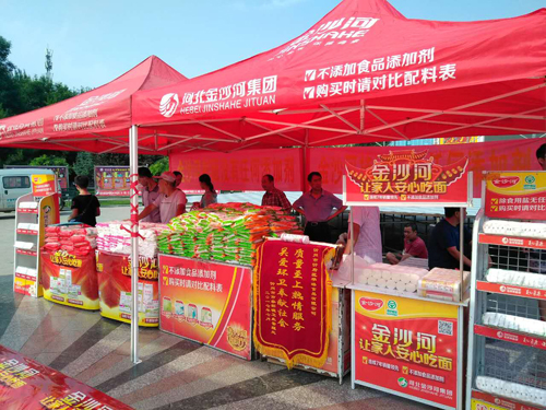 本網(wǎng)訊 7月16日上午,忻府區(qū)華琳食品有限公司在體育廣場舉辦“金沙河集團(tuán)向忻州環(huán)衛(wèi)工人致敬”的慰問活動。向忻州約1300名環(huán)衛(wèi)工人捐贈“金沙河”牌掛面、刀削面等食品,捐贈價值達(dá)上萬元。