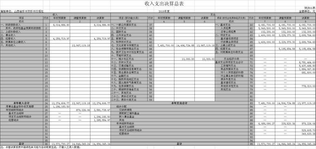忻州日報社2016年度部門決算