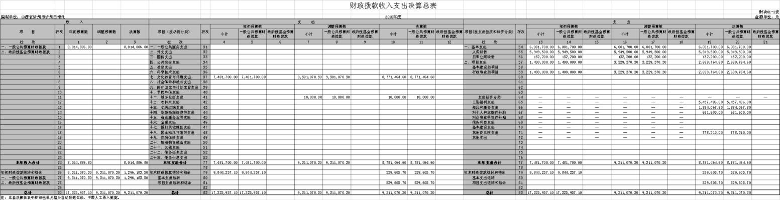 忻州日報社2016年度部門決算