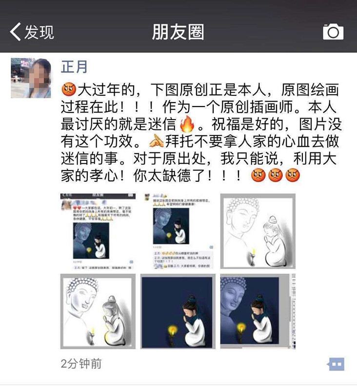 @正月插畫師在聲明中還特別強(qiáng)調(diào):自己很討厭迷信,這畫火的十分突然。那些利用大家的孝心的人!太缺德了?。?!