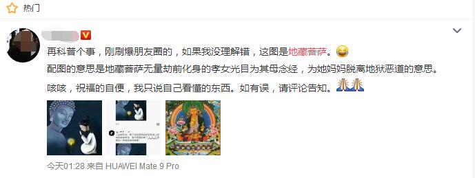 還有網(wǎng)友翻出了《地藏本愿經(jīng)》的解釋斷定這是一張地藏菩薩圖,代表孝道。