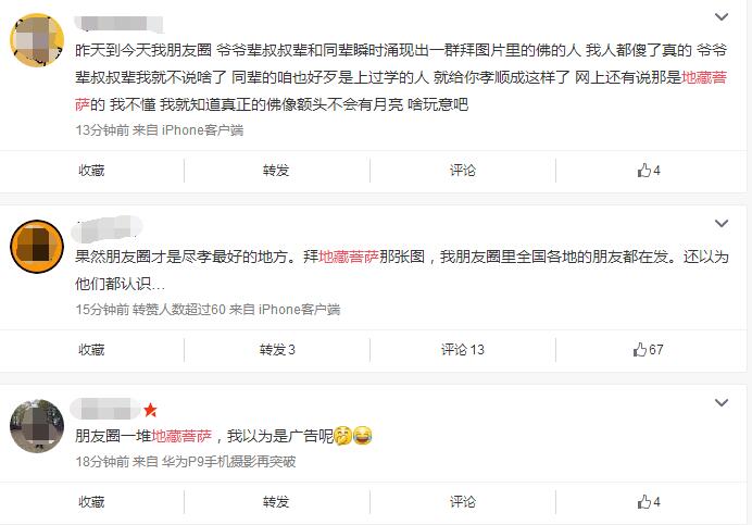 社交媒體上的瘋狂轉(zhuǎn)發(fā)之風(fēng)也引起了一些網(wǎng)友的不適,有網(wǎng)友評(píng)論:都孝順成這樣了,還說那是地藏菩薩,佛像額頭有月亮?