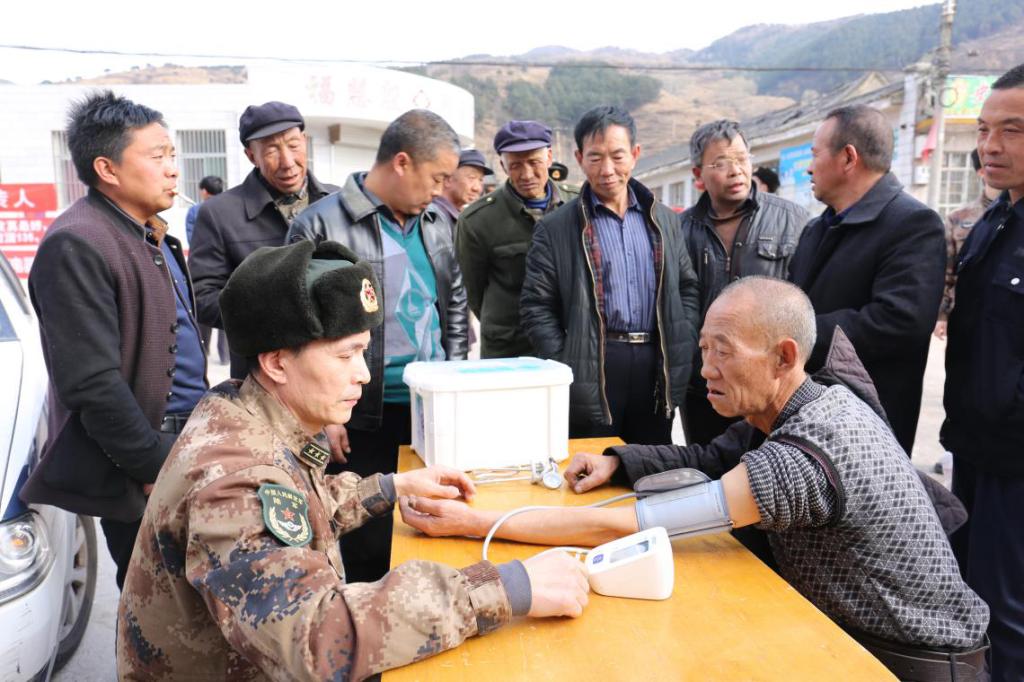 衛(wèi)生隊(duì)領(lǐng)導(dǎo)為村民測(cè)量血壓。劉志剛 攝