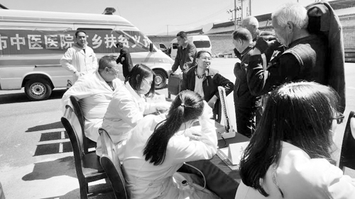 胡家溝村有貧困戶80戶。市委老干部局從2015年開始進(jìn)行幫扶,緊緊圍繞“一戶一名技術(shù)工,做好精準(zhǔn)扶貧”的工作思路,在技能培訓(xùn)、項(xiàng)目實(shí)施、基礎(chǔ)建設(shè)、教育援助、文藝活動等方面開展了大量卓有成效的工作,在2016年底取得了整村脫貧的好成績。這次健康扶貧行動,是市委老干部局認(rèn)真貫徹全市脫貧攻堅大會精神,鞏固成績、持續(xù)發(fā)力,不斷推進(jìn)幫扶成果的具體體現(xiàn)。針對村民對疾病預(yù)防和治療方面的需求,市委老干部局聯(lián)系市中醫(yī)院組織了義診活動。市中醫(yī)院內(nèi)科、外科、心內(nèi)科等多個科室的9名醫(yī)務(wù)骨干和老專家,為貧困村民把脈問診、開方治療,使106名村民得到診療。