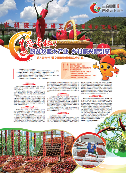 近年來,貴州省縱深推進農(nóng)村產(chǎn)業(yè)革命,把辣椒作為12個特色優(yōu)勢產(chǎn)業(yè)之一,實行省領(lǐng)導(dǎo)領(lǐng)銜、專班化推進制度,決勝全面小康、決戰(zhàn)脫貧攻堅。