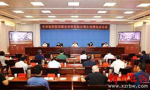 全市加快促進服務業(yè)恢復穩(wěn)定增長電視電話會議。范濤 攝