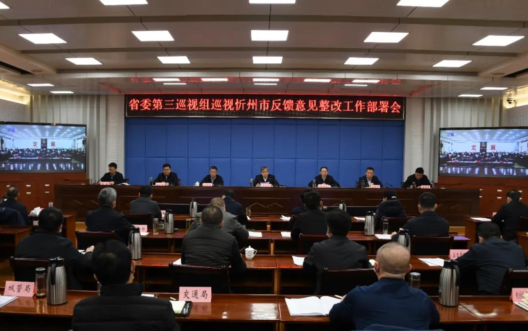 1月28日,省委第三巡視組巡視忻州市反饋意見(jiàn)整改工作部署會(huì)召開(kāi),安排部署專項(xiàng)巡視和專項(xiàng)檢查反饋意見(jiàn)的整改落實(shí)工作,切實(shí)推動(dòng)整改任務(wù)落實(shí)落細(xì)落到位,以整改的實(shí)際行動(dòng)推動(dòng)全年各項(xiàng)工作取得良好開(kāi)局。市委書記朱曉東主持會(huì)議并講話。市委副書記、政法委書記郭奔勝出席會(huì)議。市委常委、市紀(jì)委書記、市監(jiān)委主任劉卓良就監(jiān)督推動(dòng)巡視反饋問(wèn)題整改提出意見(jiàn)。市委常委、常務(wù)副市長(zhǎng)趙新年安排部署涉糧巡視問(wèn)題整改任務(wù)。市委常委、秘書長(zhǎng)、統(tǒng)戰(zhàn)部長(zhǎng)張文偉安排部署省委巡視整改專項(xiàng)檢查反饋問(wèn)題整改任務(wù)。市領(lǐng)導(dǎo)溫建軍、張敏、武憲堂、范建民、賈玲香、耿鵬鵬、郭寶厚、袁小波出席。