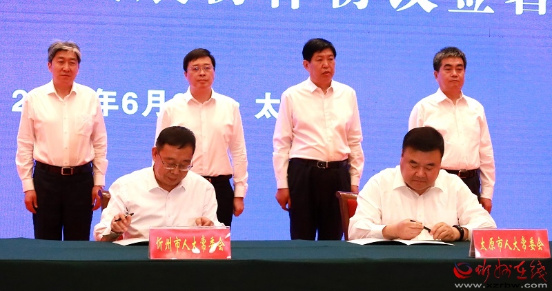 會(huì)前,太原、忻州兩市人大常委會(huì)共同簽署太忻經(jīng)濟(jì)一體化發(fā)展協(xié)作協(xié)議。