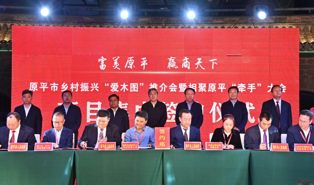 此次推介活動分為五部分,第一階段主要是參觀愛木圖景區(qū);第二階段是在愛木圖古村廣場舉行文藝表演;第三階段是項(xiàng)目簽約,共有15個項(xiàng)目舉行現(xiàn)場簽約;第四階段主要是愛木圖推介會,原平市委主要負(fù)責(zé)人作原平鄉(xiāng)村振興“愛木圖”主旨推介;第五階段是在愛木圖古村廣場舉行“牽手”茶話晚宴。