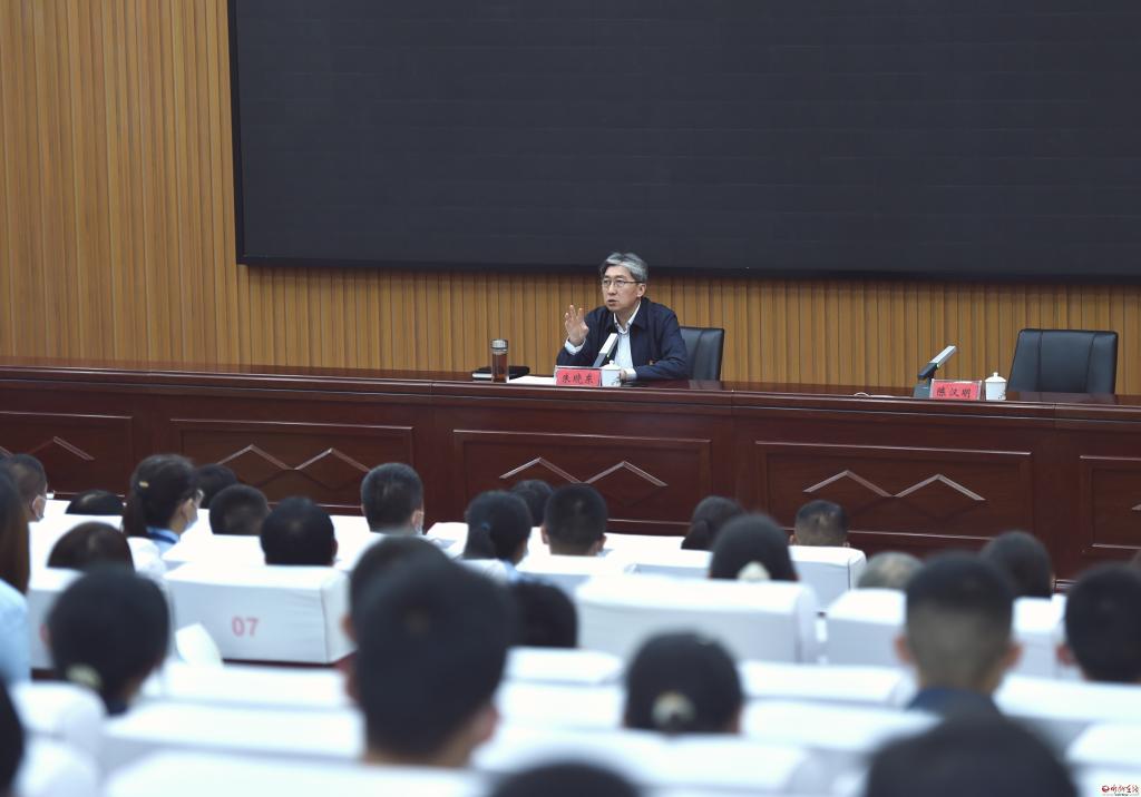 9月19日,市委書記朱曉東來到忻州一中,以“不負韶華爭朝夕,跑出青春加速度,爭做堪當民族復興重任的時代新人”為題,給該校師生講授思政課。他寄語廣大青年學子要不負建功立業(yè)的人生際遇,不負“天將降大任于斯人”的時代使命,不負黨的期望、人民的期待、民族的重托,讓青春在筑夢、逐夢、圓夢中綻放異彩,真正成為堪當民族復興大任的時代新人,以更飽滿的熱情和更昂揚的狀態(tài)迎接黨的二十大勝利召開。市委常委、秘書長、統(tǒng)戰(zhàn)部部長張文偉,副市長李碩參加。